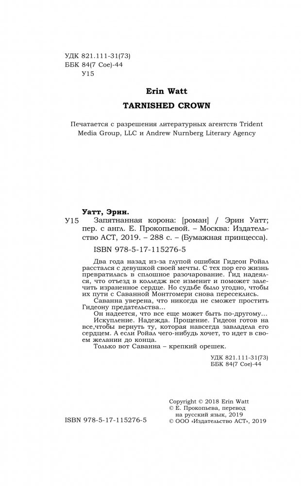 Два года назад из-за глупой ошибки Гидеон Ройал расстался с девушкой своей мечты. С тех пор его жизнь превратилась в сплошное разочарование. Гид надеялся, что отъезд в колледж все изменит и поможет залечить израненное сердце. Но судьбе было угодно .чтобы их пути с Саванной Монтгомери снова пересеклись. Саванна уверена, что никогда не сможет простить Гидеону предательства… Он надеется, что все еще может быть по-другому… Искупление. Надежда. Прощение. Гидеон готов на все ,чтобы вернуть ту, кто навсегда завладела его сердцем. А если Ройал чего-нибудь хочет, то идет в своем желании до конца. Только вот Саванна – крепкий орешек.