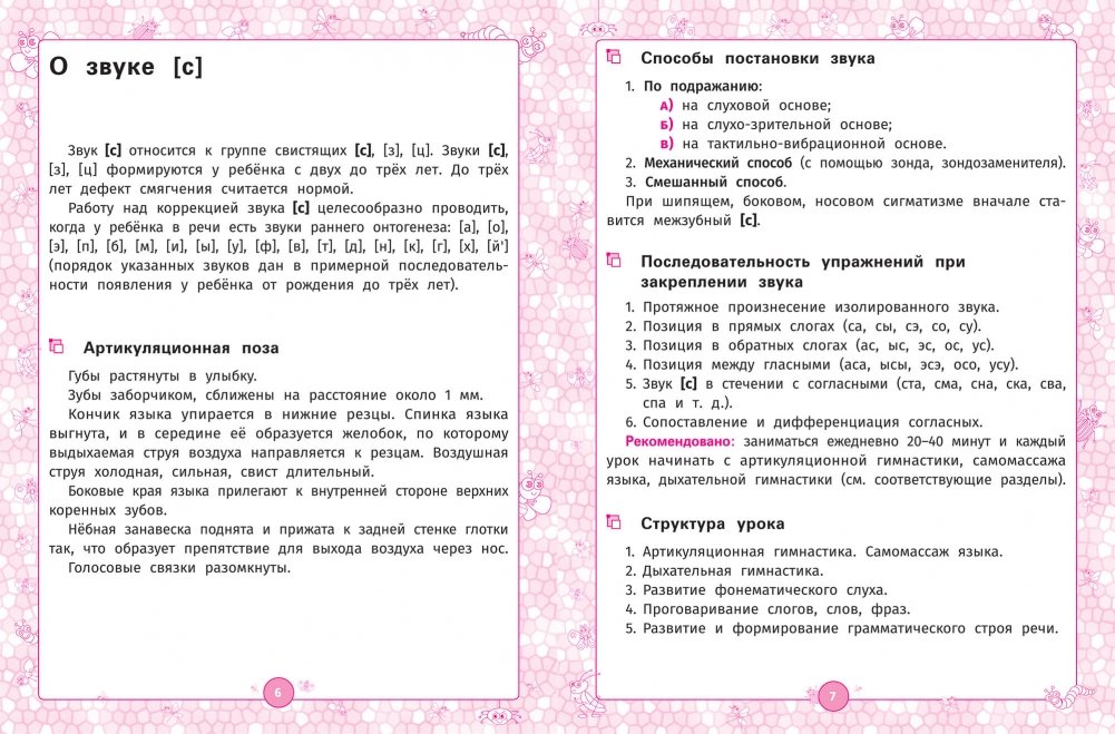В пособии представлены комплексные занятия, направленные на закрепление произношения у дошкольников звука [с]. Особенность данного пособия — апробированная методика, чёткая структура занятий, последовательное изложение учебного материала. Каждый урок содержит простые пояснения и образцы выполнения упражнений, а красочные иллюстрации помогают поддержать интерес ребёнка к занятиям. Увлекательные игровые упражнения и задания направлены на закрепление правильного звукопроизношения, обогащение словарного запаса, создание стимулов, «пусковых механизмов», которые обеспечивают развитие речи ребёнка. Основное внимание уделено развитию чувства ритма, фонематического восприятия и лексико-грамматической стороны речи. Логопедический альбом предназначен для работы с детьми дошкольного возраста с ОНР, ФФН, ФН и дизартрией. Материал может использоваться для индивидуальных занятий с логопедом, для закрепления пройденного материала по заданию логопеда и для самостоятельных занятий родителей с детьми.