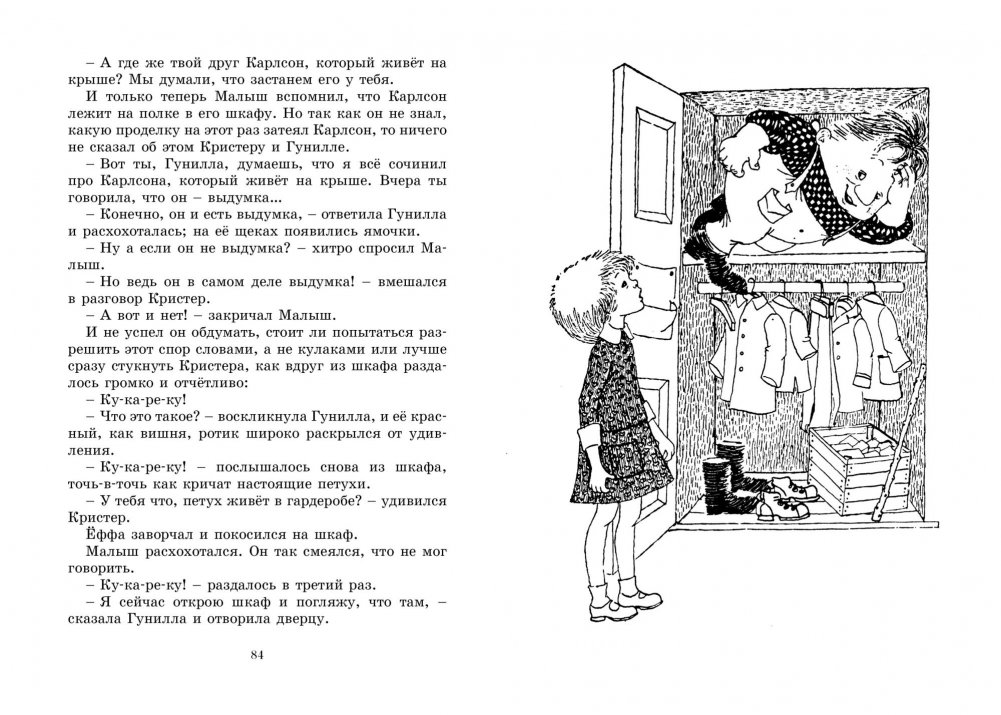 Книга замечательной шведской писательницы Астрид Линдгрен, лауреата многих престижных премий, в том числе золотой медали Андерсена, о Малыше и Карлсоне, который живёт на крыше.