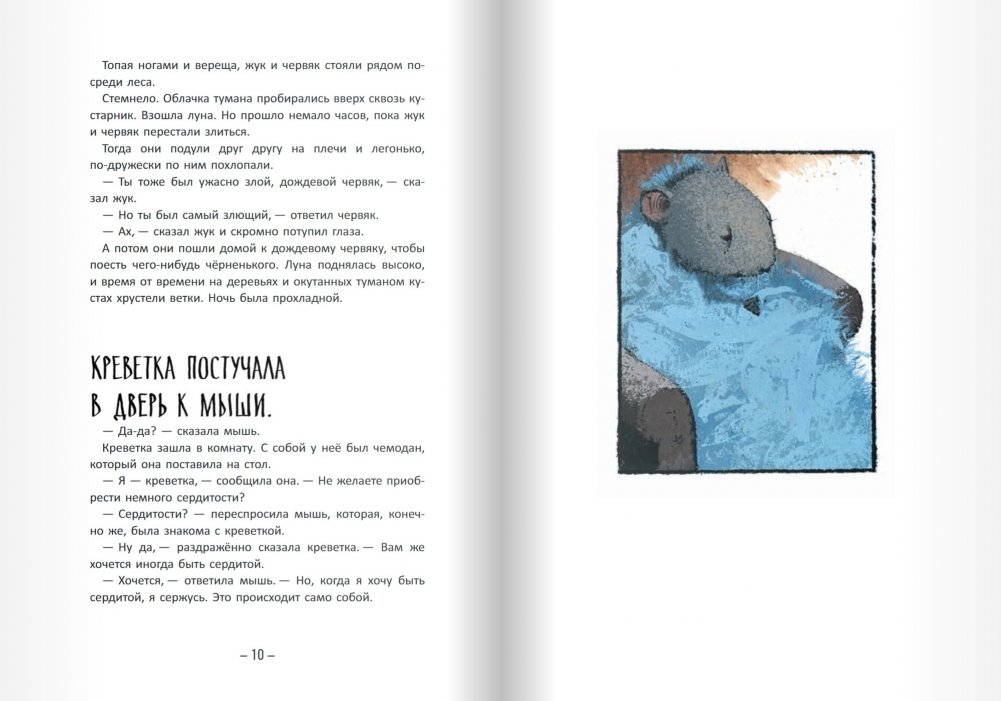 Жук объясняет сверчку, как правильно злиться, креветка пытается продать мыши сердитость, землеройка устраивает погром у белки, бегемот и носорог делят узкую тропинку, жаба-чесночница держит в страхе весь лес, а белка выясняет, почему трубкозуба ни в коем случае нельзя ставить на ноги…
