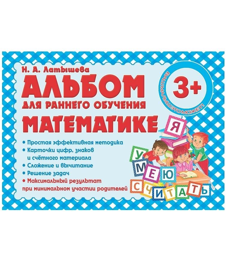Обучить ребёнка счёту и началам математики не так сложно, как кажется многим родителям. Большинство детей готово к обучению в 4-5 лет, многие дети задолго до этого возраста знают, что такое "один" и "много", "больше", "меньше" и всё чаще задают вопрос "сколько?". Это значит, что малыш хочет знать больше, а родители могут и даже должны приступить к обучению. Но если вы начнёте в 6 или даже в школьный период, когда выясняется, что ребёнку трудно даётся математика, наше пособие поможет справиться с этим. Альбом для раннего обучения математике - это методика, с помощью которой ребёнок освоит начала этой науки при минимальном содействии родителей. Он не просто выучит счёт до десяти. Он научится вычитать, складывать и сравнивать числа, узнает разницу между цифрой и числом. Малыш научится писать цифры и математические символы, решать и составлять примеры и задачи, познакомится с геометрическими фигурами.