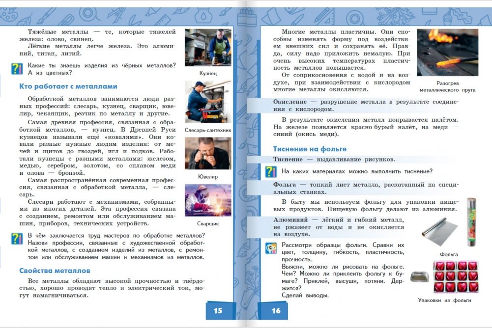 Учебник для 4 класса знакомит с новыми технологическими понятиями, новыми видами материалов и инструментов. Школьники приобретают навыки обработки материалов, исследуют и сравнивают их свойства. Каждый урок настраивает учащихся на проектную деятельность.