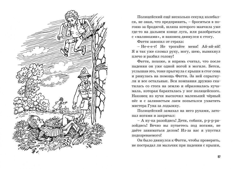 В деревушке Петерсвуд произошло самое что ни на есть настоящее преступление! Кто-то поджёг коттедж в саду мистера Хика. Пятеро детей, живущих по соседству, не собираются ждать, когда дело раскроет местный полицейский по прозвищу А-ну-ка-разойдись, и организуют клуб сыщиков. Вместе со своим псом ребята идут по следу преступника, но подозреваемых оказывается слишком много.