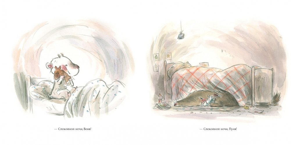 Ура! Козлёнок Пуня едет в детский летний лагерь – играть с другими козлятами и закалятся! Но ему немного тревожно – он еще никогда не ездил никуда без мамы так надолго. Как вести себя там совсем одному в компании незнакомых козлят? Получится ли уснуть в непривычной обстановке? Всё, конечно, будет хорошо – придумать решение Пуне поможет его мудрый друг волк Вениамин.