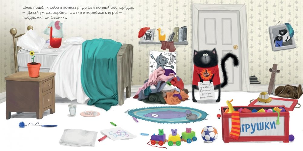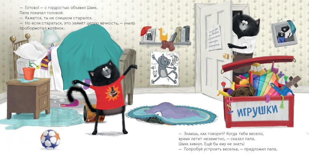 У котёнка Шмяка сегодня много домашних хлопот - убрать игрушки, застелить постель, полить цветы... Это так скучно! Что же делать? А что, если цветы - это дикие джунгли и надо спасти остров от засухи? А что если игрушки - это сокровища пиратов, которые нужно спрятать в сундук? Так выполнять домашние поручения гораздо веселее! Но справится ли Шмяк?