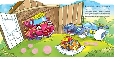 Удивительные и смешные рассказы о машинках, где ребенок может раскрашивать и украшать странички веселыми наклейками.