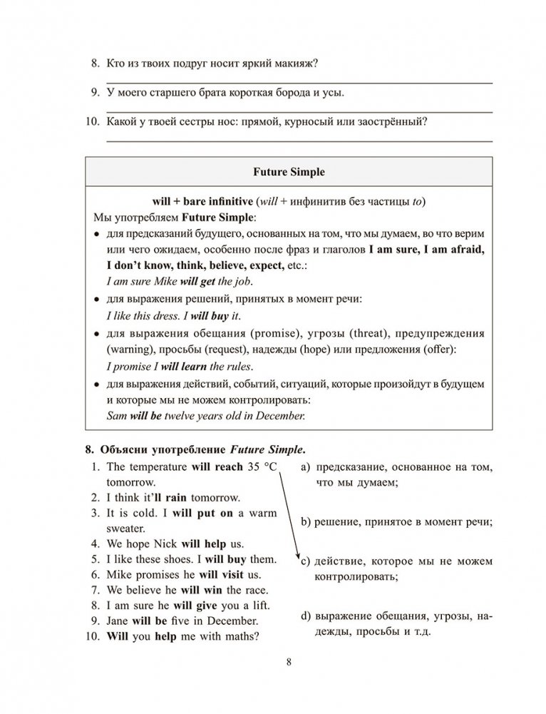 Основная цель пособия — помочь ученикам 9 класса в освоении грамматики английского языка, способствовать развитию и автоматизации у них навыков правильного употребления грамматических форм в устной и письменной речи.