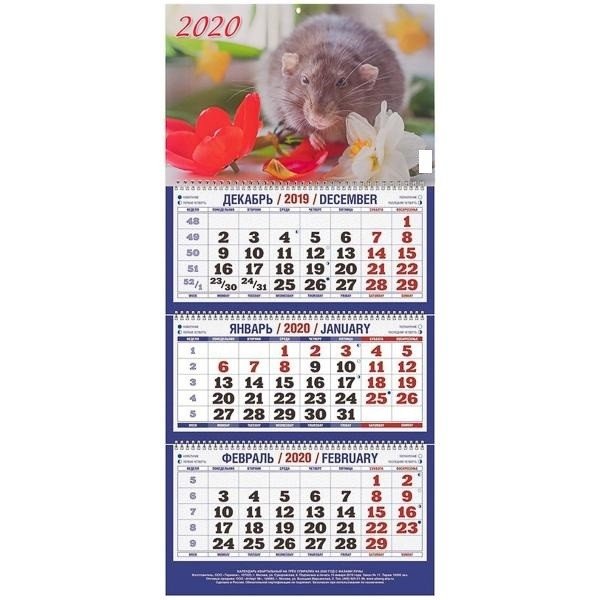 Календарь настенный квартальный трехблочный на 2020 год "Символ года. Вид 1", 310x685 мм