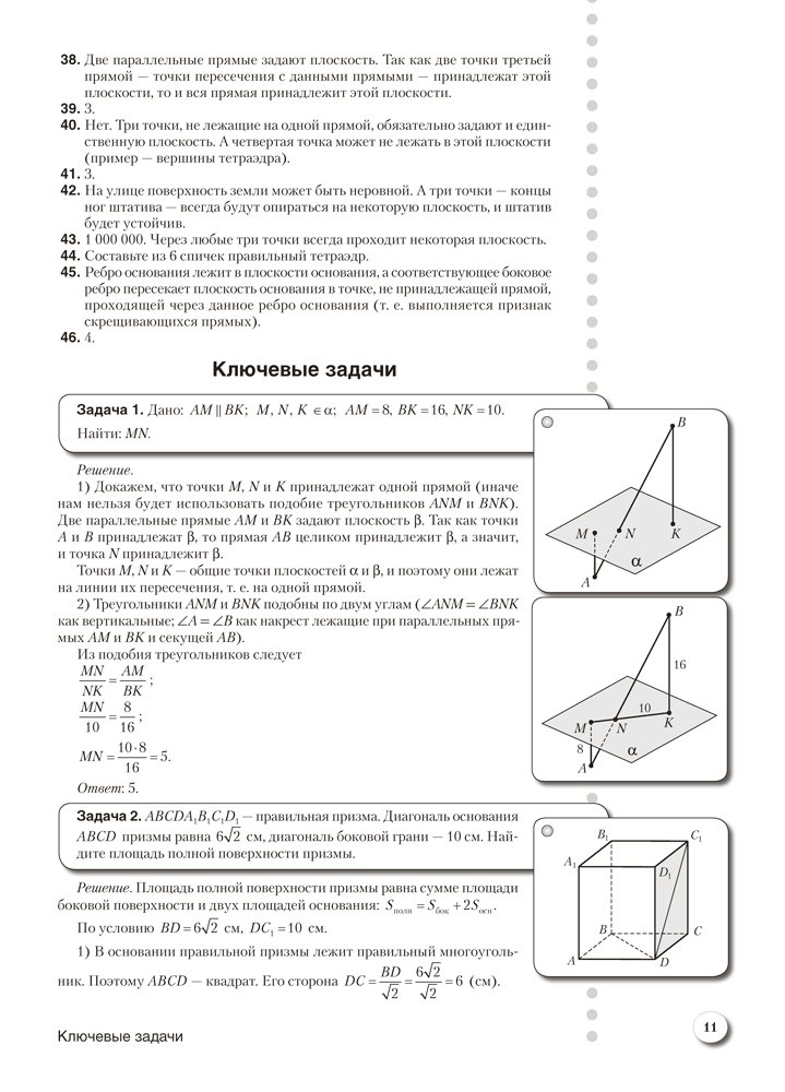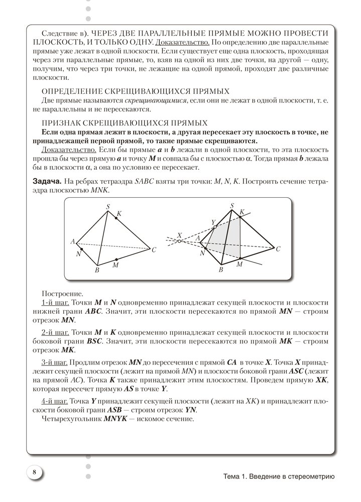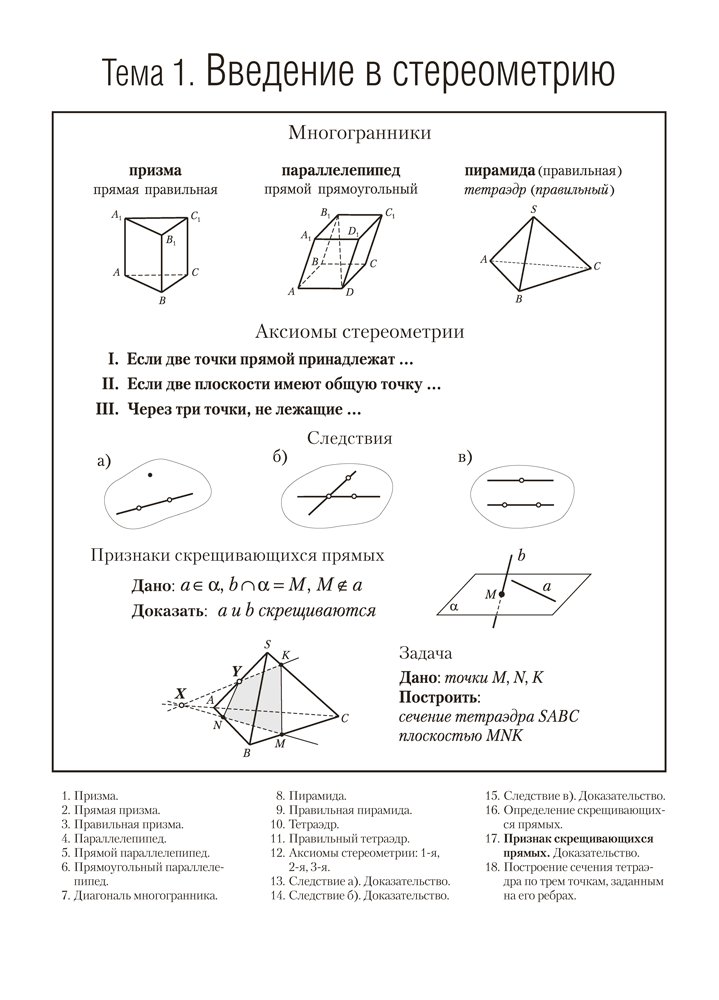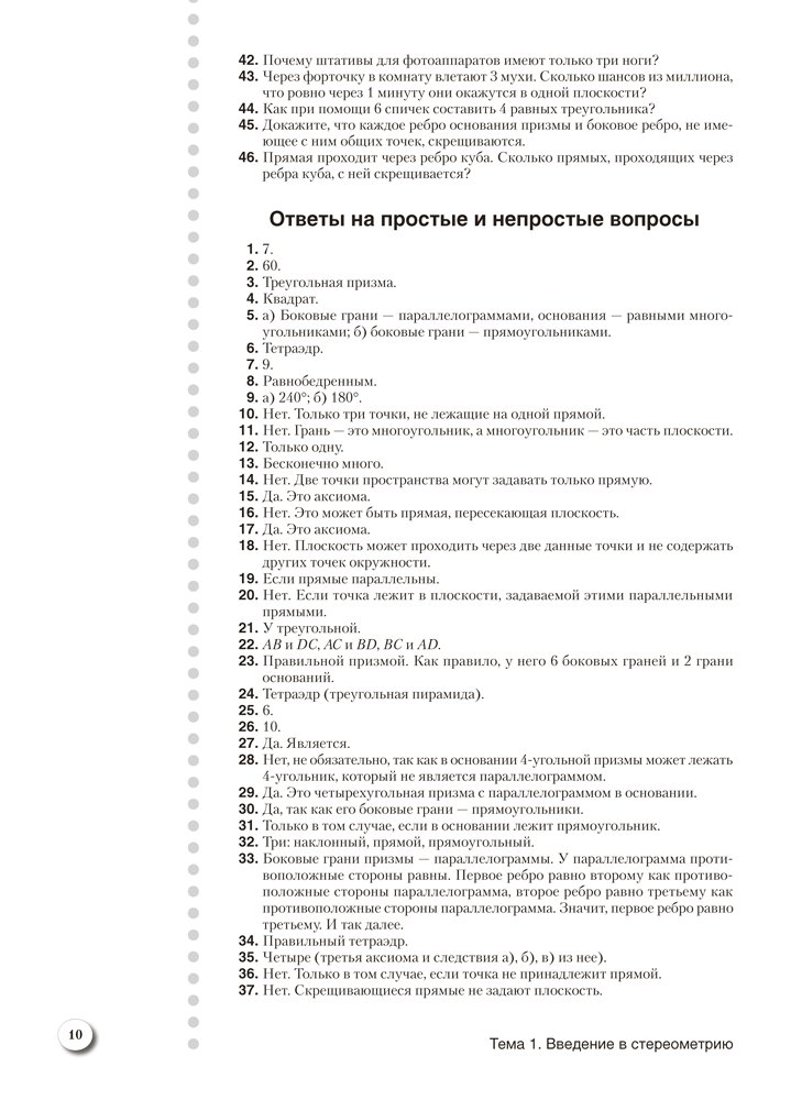 Книга дополняет действующие учебные пособия для 10 класса. Она позволяет быстро обобщить, систематизировать учебный материал и при желании изучить его с опережением программы. Каждая глава сопровождается опорным конспектом с контрольными вопросами, ответами на них и набором задач на готовых чертежах, имеющих параллельную двухвариантную структуру. В конце издания ко всем задачам приводятся ответы.