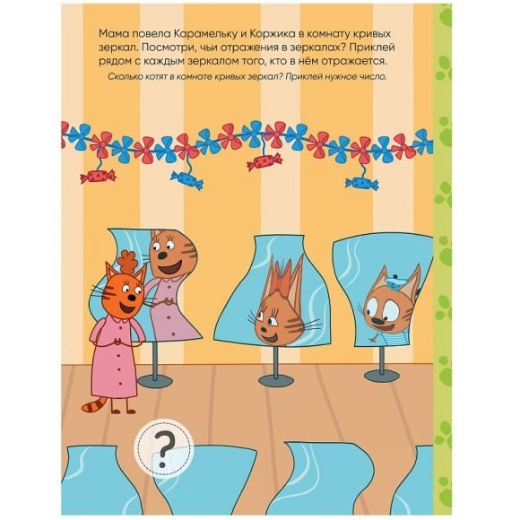 Миу-миу-миу! А ваш ребенок любит мультсериал "Три кота"? Тогда ему обязательно понравится эта красочная книжка с многоразовыми наклейками.