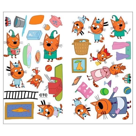 Миу-миу-миу! А ваш ребенок любит мультсериал "Три кота"? Тогда ему обязательно понравится эта красочная книжка с многоразовыми наклейками.