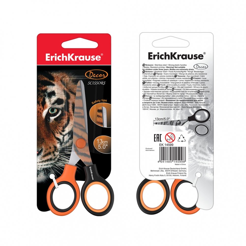 Ножницы с печатью на лезвии "Тигр", 13 см