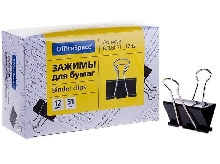 Зажимы для бумаг, 51 мм, OfficeSpace, 12 шт., черные, картонная коробка