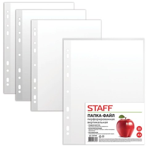 Папки-файлы перфорированные, вертикальные "Яблоко", А3, 50 штук, гладкие