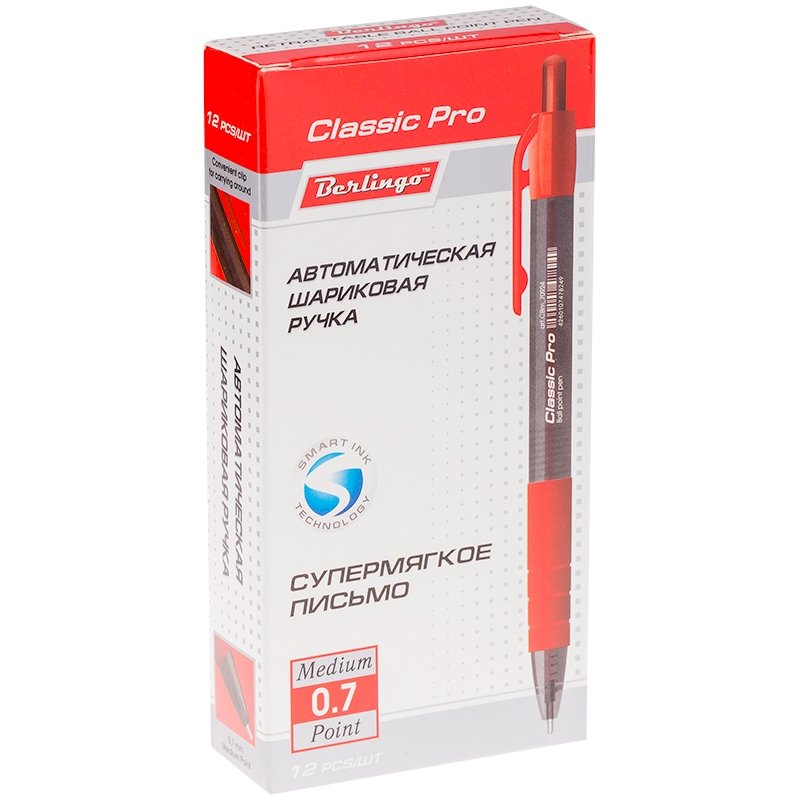 Ручка шариковая автоматическая Classic Pro с клипом и мягким резиновым грипом. Кнопочная подача стержня. Технология Smart Ink обеспечивает супермягкое письмо. Диаметр пишущего узла - 0,7 мм.