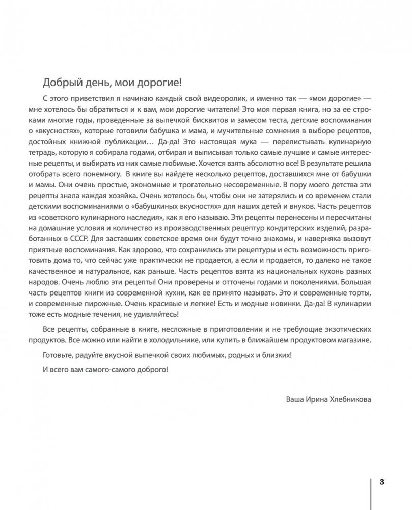 Магия Ирины Хлебниковой не поддается объяснению. Она готовит простые блюда из простых продуктов: и всякий раз совершает чудо. Ее румяные пироги, хрустящее печенье, воздушные пирожные, умопомрачительные торты создают неповторимую атмосферу домашнего уюта.