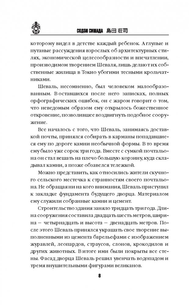 Япония, Рождество 1983 года. Богатый промышленник Кодзабуро Хамамото собрал в своем особняке друзей и знакомых. Гости поражены его домом — причудливой конструкцией с множеством комнат, наклонными полами и непонятно куда ведущими лестницами, с "падающей" высокой башней, напоминающей Пизанскую. Все они восторгаются фантазией хозяина и готовятся весело встретить Рождество. Но их ожиданиям не суждено сбыться. Потому что в сочельник в доме происходит убийство. От удара ножом погибает шофер одного из приглашенных. Срочно вызванные полицейские в полном замешательстве. Ведь убийство невозможно было совершить — все обстоятельства и условия против этого. Да и мотива ни у кого нет... Пока инспектор с помощниками ломают голову, а гости пребывают в прострации, в доме происходит второе убийство, еще более невероятное. Связавшись с начальством, ошеломленные полицейские узнают, что к ним едет человек, способный найти преступника. Что это астролог и гадатель из Токио Киёси Митараи. И что лишь он один способен разобраться в этой умопомрачительной головоломке... У вас будут все необходимые ключи. Но сможете ли вы найти отгадку прежде, чем это сделают сыщики?