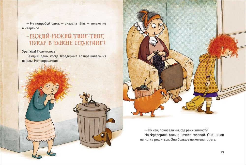 Кристине Нестлингер известная австрийская писательница, лауреат премий имени Ханса Кристиана Андерсена и памяти Астрид Линдгрен, автор более ста книг, многие из которых стали настоящей международной классикой. «Рыжеволосая Фредерика» ее самая первая книга, добрая сказка о девочке с необычными огненно-рыжими волосами. Из-за этих волос Фредерику дразнили и в школе, и на улице. Но однажды она узнала, что ее рыжие волосы настоящее чудо, и они помогут и ей и всем, кого она любит.