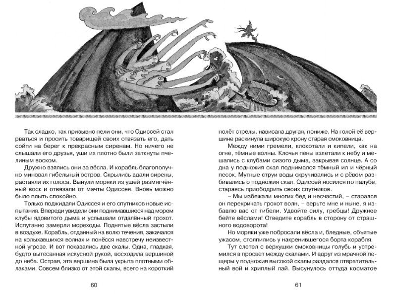 Эта книга, основанная на древних мифах, повествует о долгих странствиях хитроумного царя Одиссея, который по окончании Троянской войны возвращается домой на остров Итаку, где его ждут жена Пенелопа и сын Телемах. По дороге он преодолевает немало препятствий: плен у циклопа Полифема, бурю Эоловых ветров, коварный пролив между Сциллой и Харибдой.