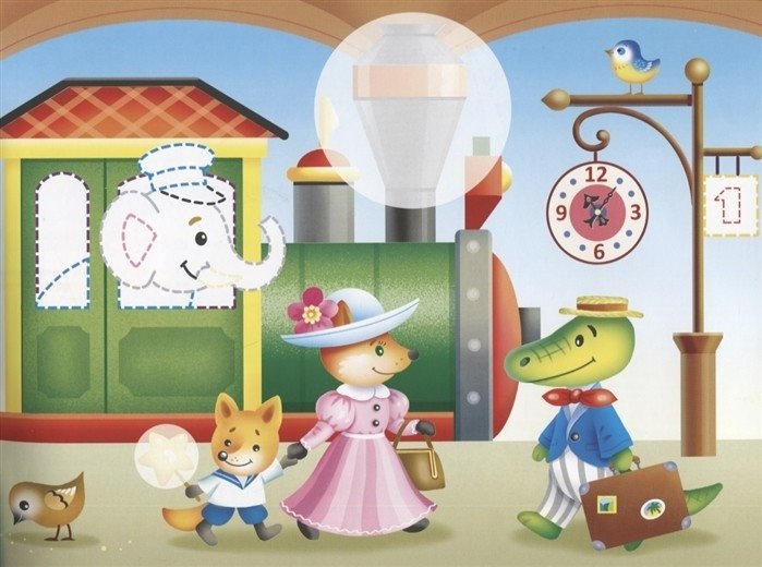 Наклейки "Паровозик". Наклей, обведи, раскрась