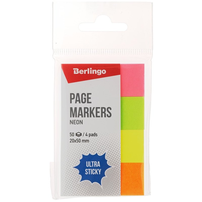 Флажки-закладки "Ultra Sticky", 20x50 мм, 4 неоновых цвета по 50 листов