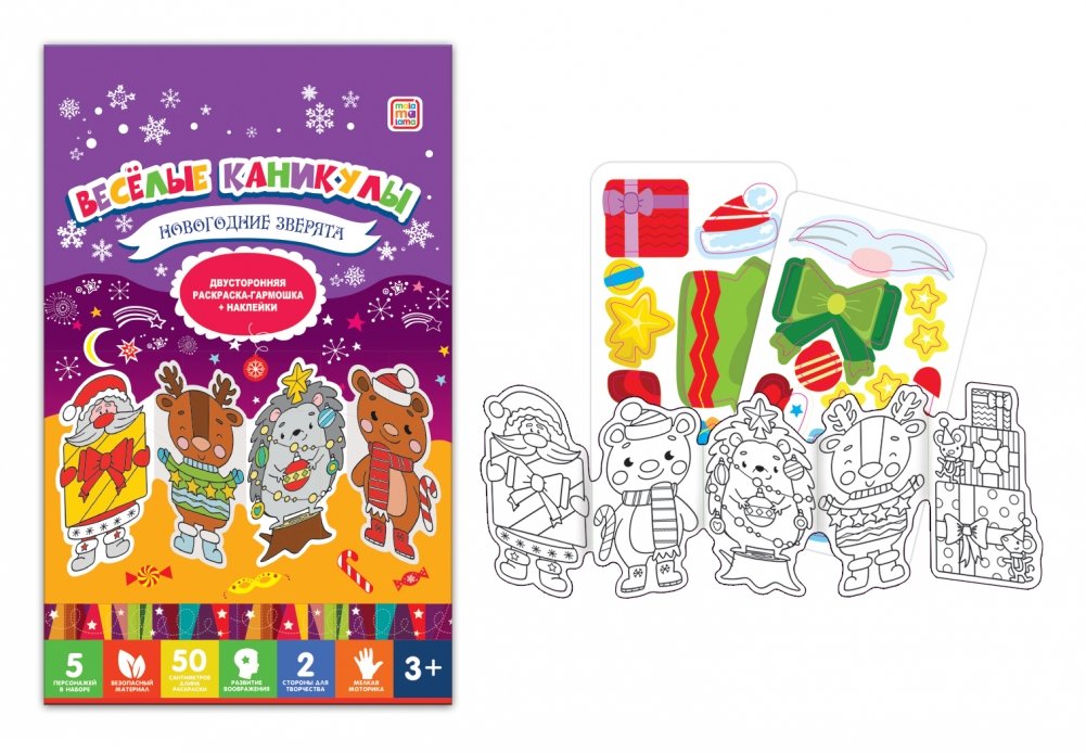 Двусторонняя раскраска понравится любому ребенку. Она сделана в виде гармошки. Раскрашивая героев и наклеивая наклейки, можно оживить их. Рисование позволит развить творческие способности ребенка, его фантазию и усидчивость.
