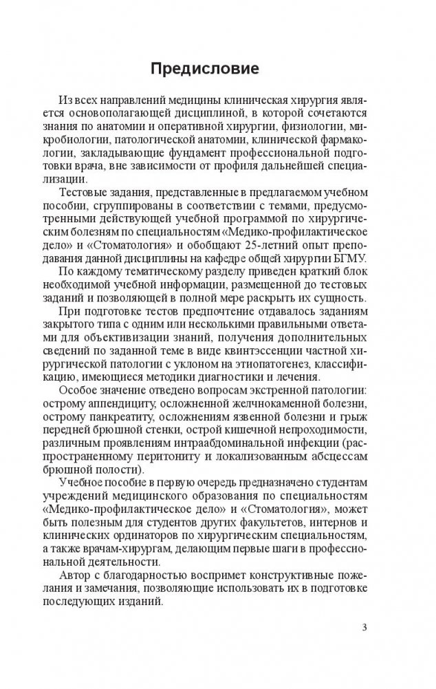Материал изложен в виде тестовых заданий, сгруппированных в соответствии с темами, предусмотренными учебной программой: заболевания периферических сосудов, щитовидной и молочных желез, прямой кишки и параректальной клетчатки, гнойные заболевания легких, экстренные заболевания органов брюшной полости.