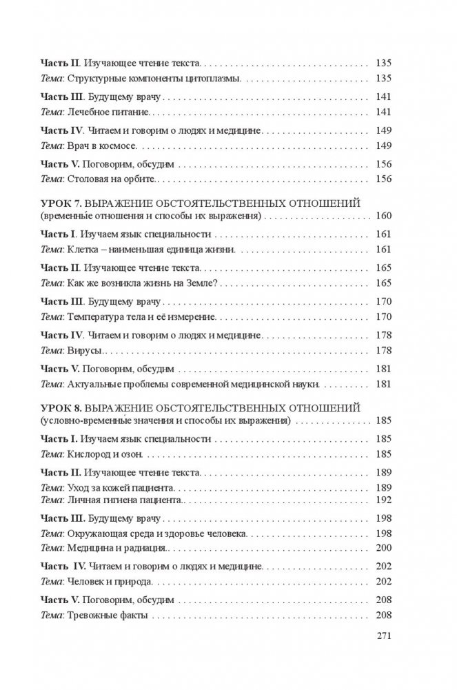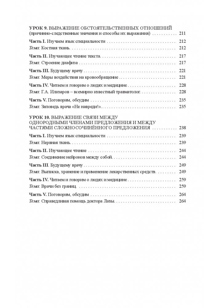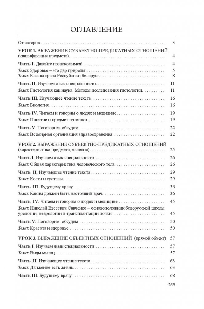 Пособие содержит 10 тем-уроков, представленных пятью частями, и предлагает изучение, усвоение грамматических конструкций, формирование умений и автоматизацию навыков их использования в репродуктивных и продуктивных видах речевой деятельности, изучение новой терминологической лексики. В каждой части даются новые слова, словосочетания, предтекстовые задания, отрабатывающие лексико-грамматический материал и снимающие трудности при чтении.