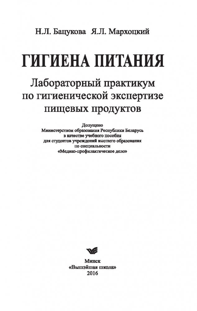 Для студентов медико-профилактических факультетов медицинских вузов, работников пищевой промышленности и общественного питания