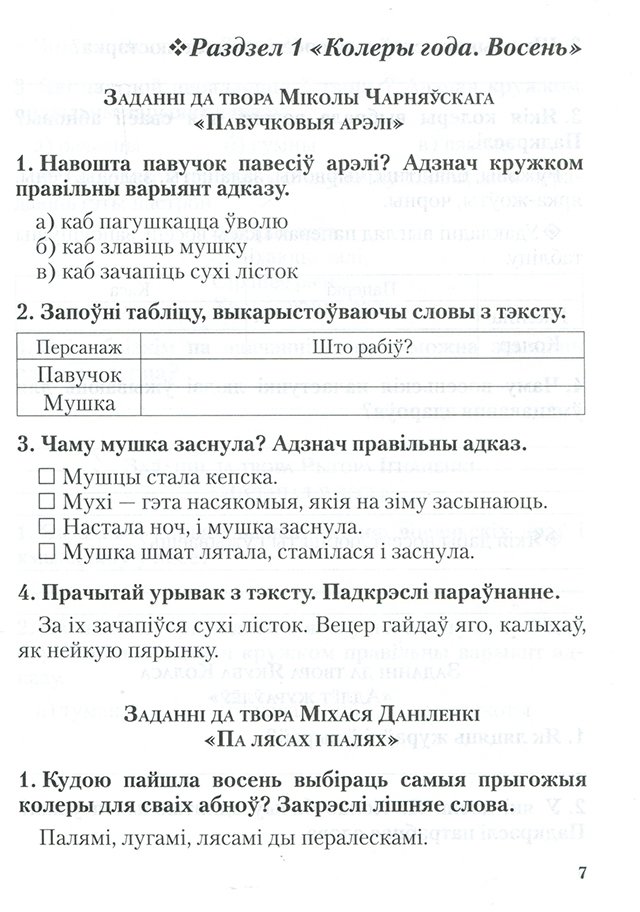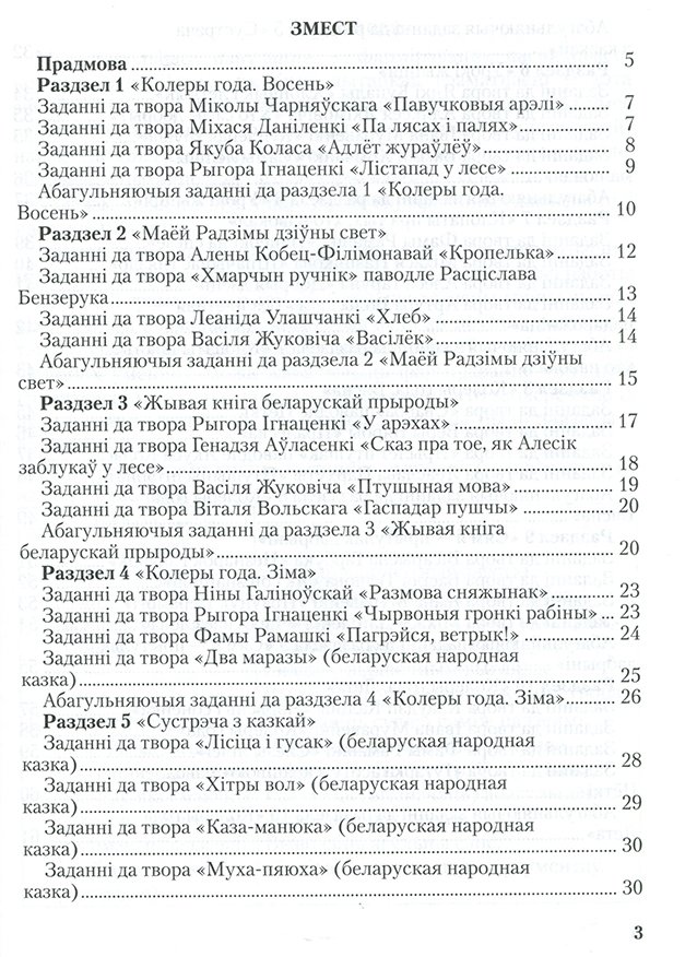 Вучэбны прадмет "Літаратурнае чытанне" ў 2-м класе змяшчае 10 раздзелаў чытання. Вучэбныя заданні складзены да чатырох твораў кожнага раздзела. Акрамя таго, прапануюцца яшчэ вучэбныя заданні абагульняючага характару да кожнага з 10 раздзелаў у двух варыянтах. Заданні прадстаўлены ў выглядзе картак для індывідуальнай, групавой і калектыўнай работы.