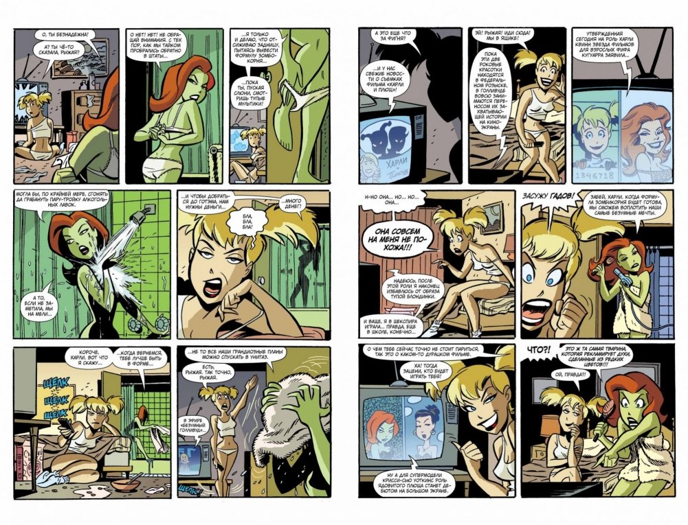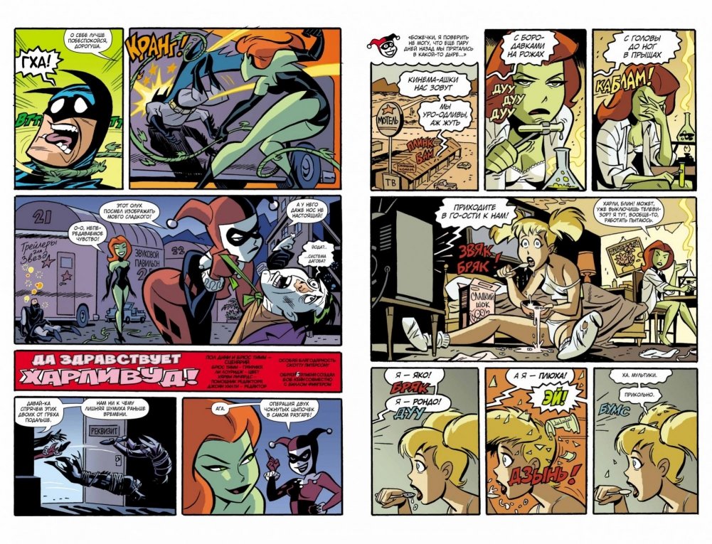 Сингл «Да здравствует Харливуд!» (Batman: Harley And Ivy #3 - Hooray For Harleywood!!) от великолепного Пола Дини и бесподобного Брюса Тимма. Очень актуальная история — вот прямо к выходящему фильму. Харли Квинн и Ядовитый Плющ узнают о том, что Голливуд хочет нажиться на их популярности и снять о них фильм – ничем хорошим, как вы понимаете, это не закончится. Да ещё и Бэтмен заявится на шум!