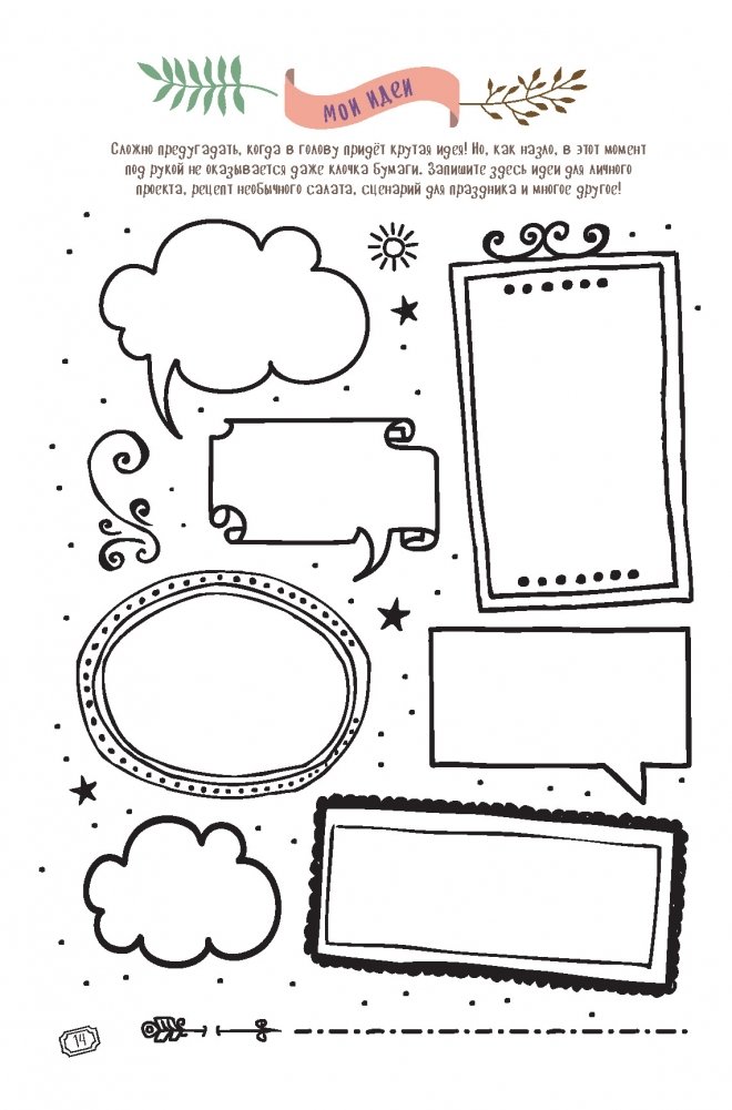 За шаблонами следует более 100 страниц с удобной линовкой в точку, которая трансформируется и в линейку, и в клетку. Используйте для заполнения пустых страниц готовые шаблоны или придумайте свой дизайн для их оформления.
