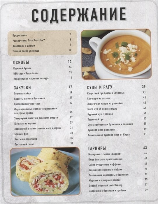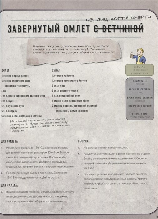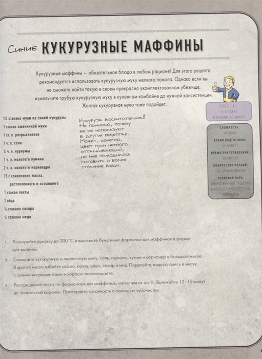 И если боевые навыки остаются на вашей совести, то с едой мы поможем. Поваренная книга, созданная компанией «Волт-Тектм» и дополненная ценными замечаниями жителя убежища, не даст умереть на просторах Пустоши (и кухни).