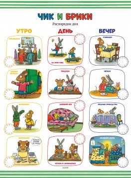 С плакатами интересно работать: реплики героев подскажут, что делать. Можно дорисовать стрелки на часиках, изучая распорядок дня, сосчитать изображенные предметы, запоминая цифры, повторить эмоции и вежливые слова, называть признаки времен года, изобразить, как говорят животные, и так далее. Размеры каждого плаката впечатляют — 50х70 см.