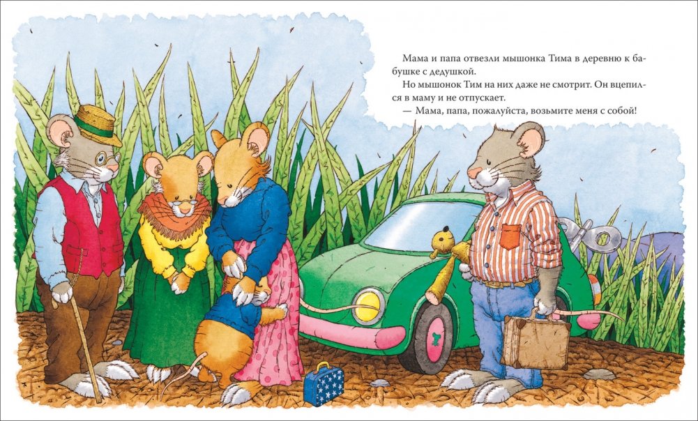 Мама и папа уезжают на несколько дней. Мышонок Тим должен пожить у бабушки с дедушкой, но оставаться у них ему совсем не хочется. Ему кажется, что там не будет ничего интересного. Но, конечно, это не так, и бабушка с дедушкой непременно придумают, чем занять внука!