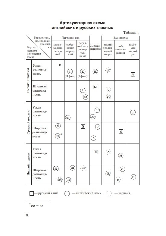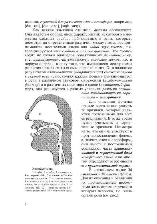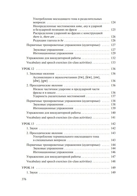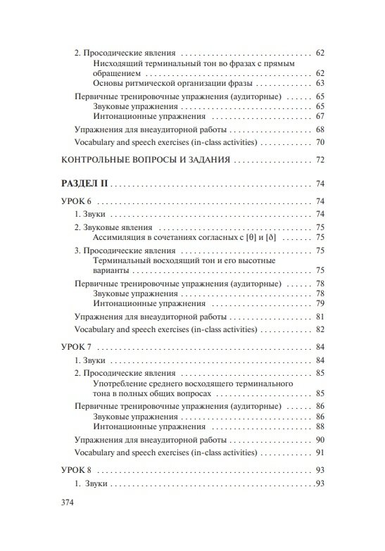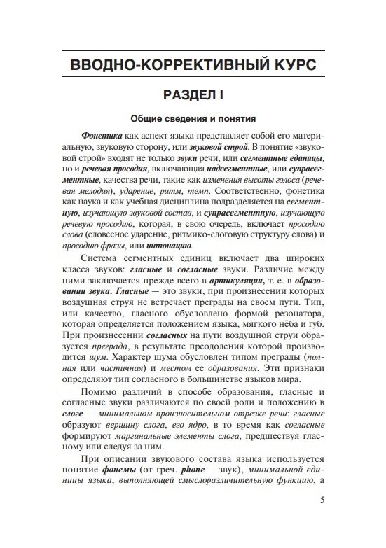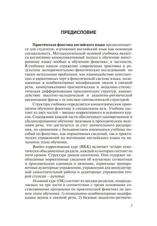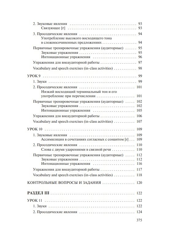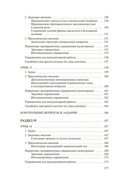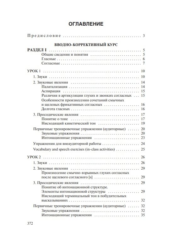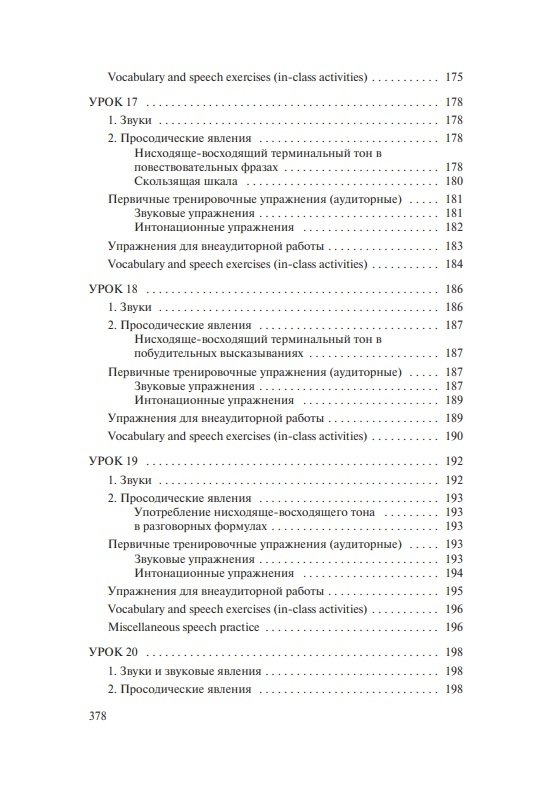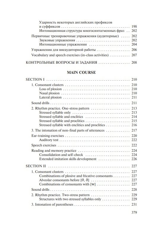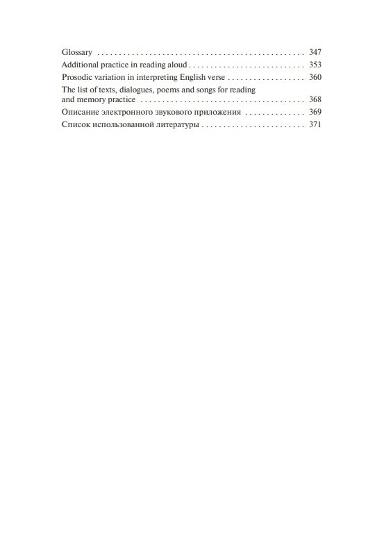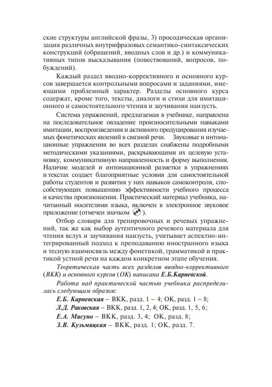 Состоит из вводно-коррективного и основного курсов. Содержит теоретические сведения о звуковых и интонационных явлениях, практические упражнения для последовательного овладения произносительными навыками, а также проинтонированный материал для чтения и заучивания наизусть (тексты, стихи, песни). Модели, ключи и интонационная разметка в упражнениях и текстах обеспечивают возможность самостоятельной работы и самоконтроля. Электронное звуковое пособие включает весь практический материал учебника, начитанный носителями языка.
