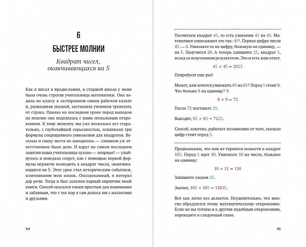 Забудьте о калькуляторе, эта книга научит вас скоростным вычислениям в уме или с карандашом. Чтобы считать быстрее, достаточно думать немного иначе, уверен ее автор Ингве Фогт - норвежский журналист научного журнала Apollon и фанат математики. Вы узнаете о простых и нескучных методах быстрого счета, для которых понадобится лишь знание базовых арифметических правил. Метод Трахтенберга, китайский способ счета с помощью черточек и множество других математических техник помогут вам без труда складывать и вычитать, умножать и делить, извлекать квадратный корень и возводить в квадрат большие числа. Эта книга для любителей чисел всех возрастов, а также для тех, кто хочет овладеть супербыстрым счетом - для учебы, работы или удобства в повседневной жизни.