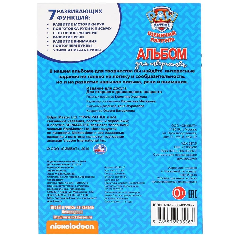 Альбом для творчества «Щенячий патруль. Спасатели» ТМ «УМка» – настоящий подарок для малыша: