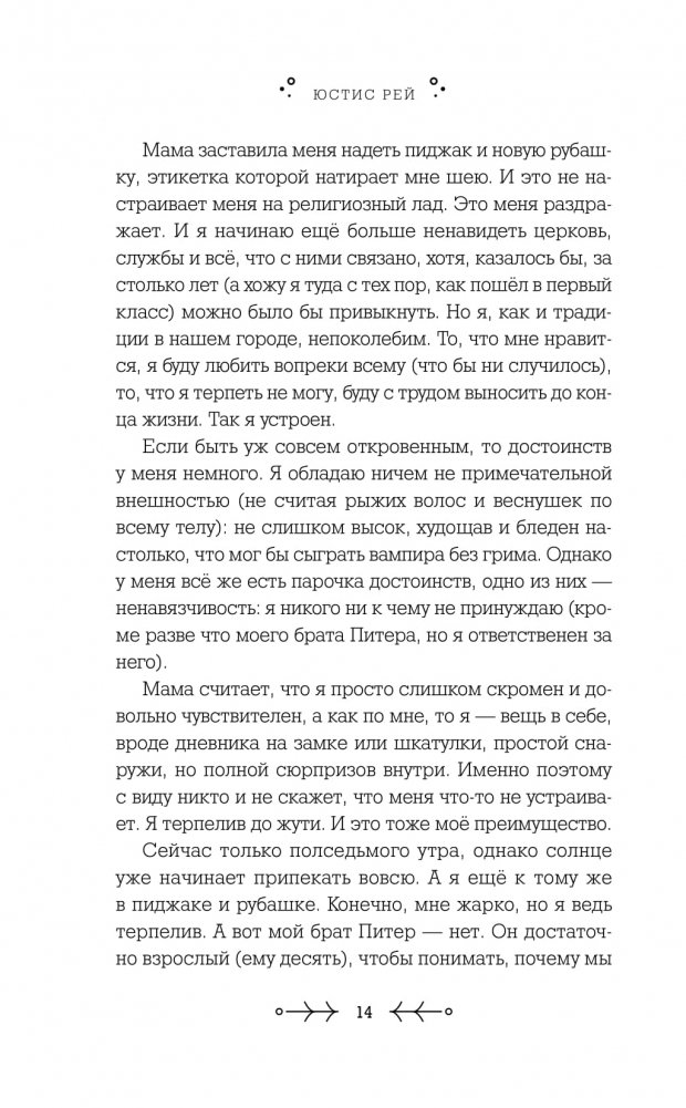 Меня зовут Сид Арго. Мой дом – город Корк, один из самых консервативных и религиозных в штате Пенсильвания. У нас есть своеобразная Библия (её называют Уставом), открыв которую, на первых ста пятидесяти страницах вы увидите свод правил, включающий обязательность молитв, служб и запреты. Запреты на всё. Нельзя громко говорить на улице. Нельзя нарушать комендантский час. Нельзя пропускать религиозные собрания. Нельзя. Нельзя. Нельзя. Ничего нельзя, кроме тайного ощущения собственной ничтожности…