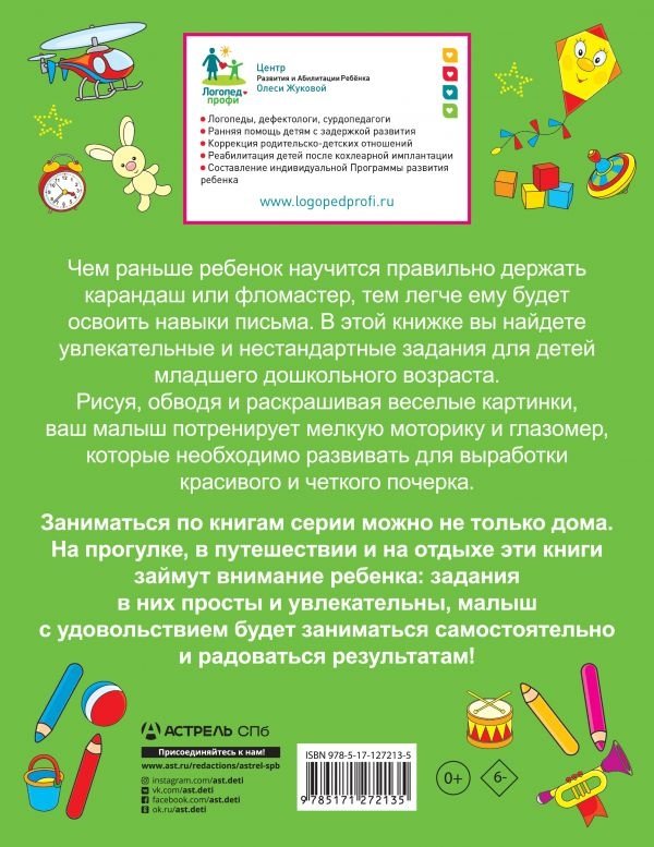 - веселые рисунки, которые надо обводить, раскрашивать и штриховать, что поможет в дальнейшем сформировать красивый и аккуратный почерк.