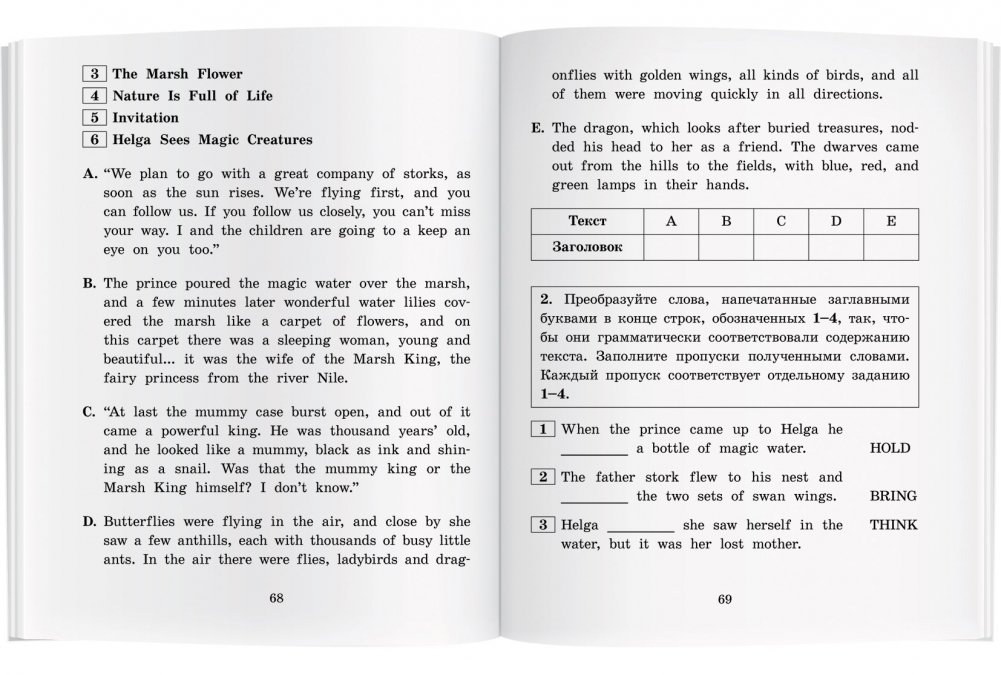 Книга представляет собой адаптацию сказки знаменитого датского писателя Ханса Кристиана Андерсена (1805-1875) "Принцесса из кувшинки" на английском языке. В ней рассказывается удивительная история о заколдованной дочери египетской принцессы и болотного царя по имени Хельга, которую аист нашёл в огромной кувшинке. Преодолеть зло и колдовские чары, найти своё счастье героине помогут магия, доброта, любовь близких и помощь верных друзей. Данное пособие поможет учащимся средней школы подготовиться к основному государственному экзамену по английскому языку. Текст пособия адаптирован в учебных целях до уровня Elementary. Каждая глава сопровождается комментарием, переводом трудных слов и выражений, а также упражнениями, направленными на формирование коммуникативной компетенции учащихся. Упражнения позволят сформировать коммуникативные умения в чтении, письменной речи, говорении, а также развить лексико-грамматические навыки. В конце пособия помещены ответы к большинству заданий, англо-русский словарь, а также тест в формате ОГЭ с ключами. Книга предназначена учащимся 5-8 классов образовательных организаций, а также широкому кругу лиц, изучающих английский язык.