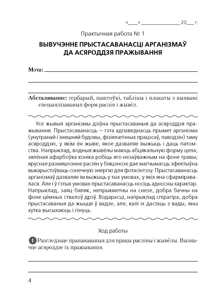 Сшытак падрыхтаваны ў адпаведнасці з вучэбнай праграмай базавага узроўня і вучэбным дапаможнікам па біялогіі для 10 класа ўстаноў агульнай сярэдняй адукацыі. Выданне прызначана для больш эфектыўнага выканання вучнямі лабараторных і практычных работ на ўроках, а таксама падчас дэманстрацыйнаго доследа і экскурсій. Выкарыстанне дапаможніка дазволіць не толькі сэканоміць час пры выкананні і афармленні той ці іншай работы, але і сканцэнтраваць увагу на самых важных яе этапах. Прыведзеныя заданні рознага ўзроўню складанасці дапамогуць вучням лепш зразумець і замацаваць матэрыял, а настаўніку арганізаваць дыферэнцыраваны падыход да навучання біялогіі.