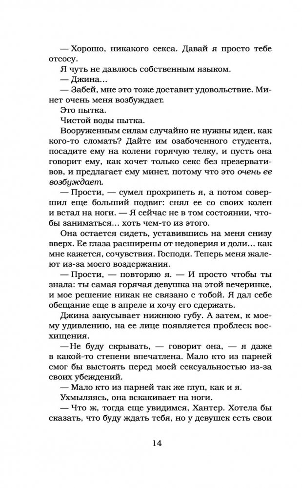 Какой урок я усвоил после того, как в прошлом году мои развлечения стоили моей хоккейной команде целого сезона? Больше никаких провалов. Больше никаких шашней, и точка. Как новому капитану команды мне нужна новая философия: сначала хоккей и учеба, а потом уже девушки. То есть я, Хантер Дэвенпорт, официально принимаю целибат… и неважно, насколько это все усложнит.