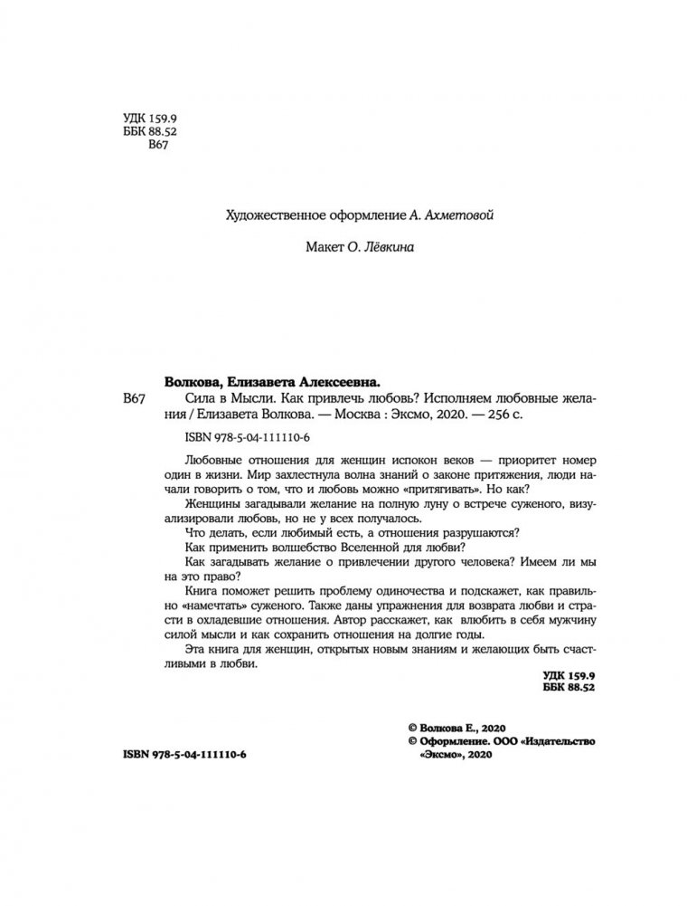 Любовные отношения для женщин испокон веков — приоритет номер один в жизни. Мир захлестнула волна знаний о законе притяжения, люди начали говорить о том, что и любовь можно "притягивать". Но как? Женщины загадывали желание на полную луну о встрече суженого, визуализировали любовь, но не у всех получалось. Что делать, если любимый есть, а отношения разрушаются? Как применить волшебство Вселенной для любви? Как загадывать желание о привлечении другого человека? Имеем ли мы на это право? Книга поможет решить проблему одиночества и подскажет, как правильно "намечтать" суженого. Также даны упражнения для возврата любви и страсти в охладевшие отношения. Автор расскажет, как влюбить в себя мужчину силой мысли и как сохранить отношения на долгие годы. Эта книга для женщин, открытых новым знаниям и желающих быть счастливыми в любви.