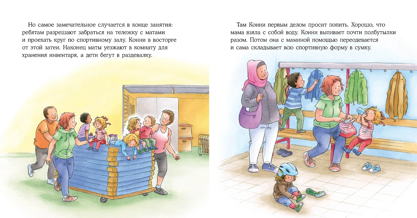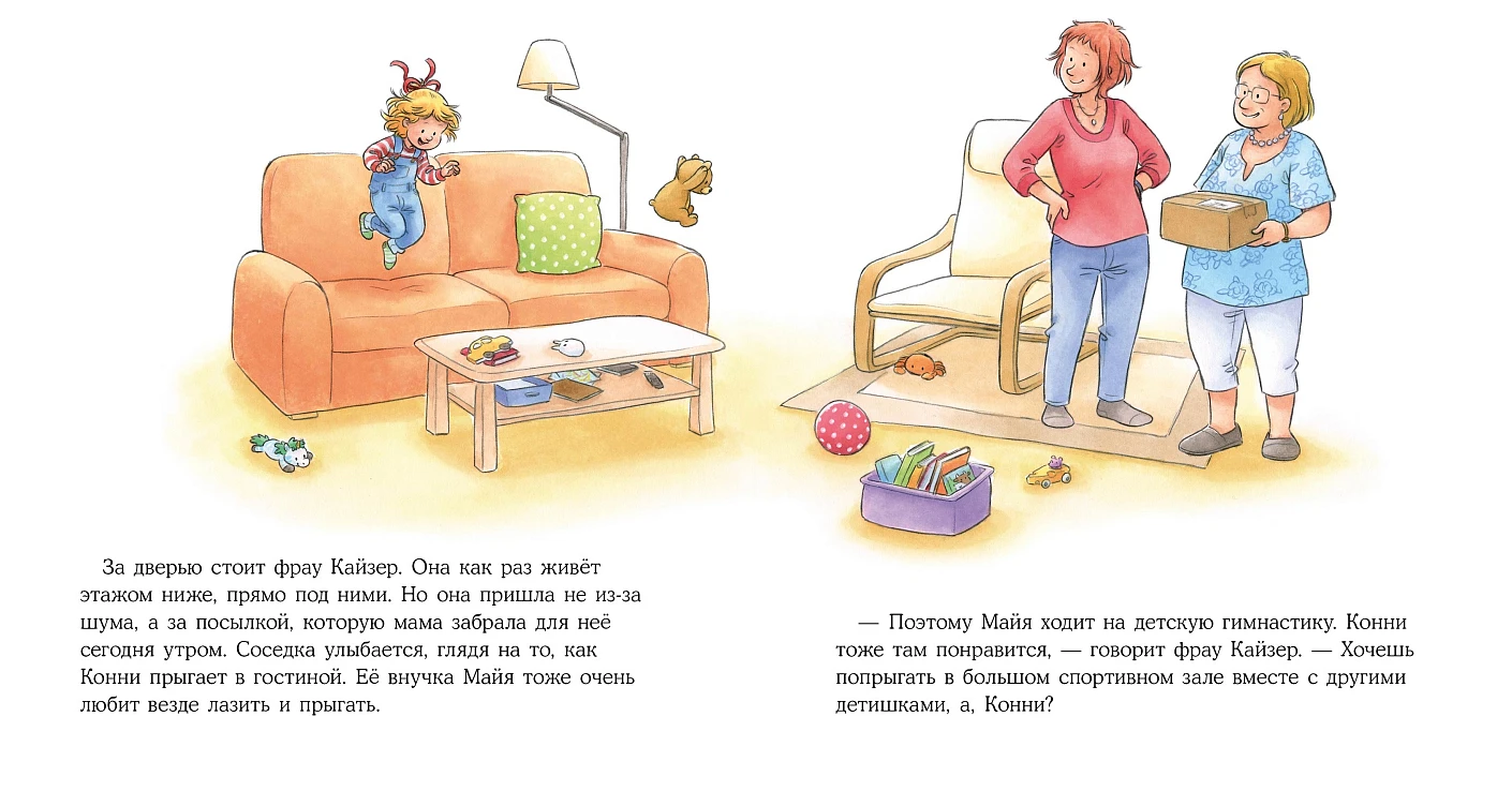 Вот уже 20 лет малыши во всём мире растут вместе с Конни — доброй девочкой в забавной полосатой футболке. С этими книгами ребёнок перестанет бояться врача, первого дня в садике или школе, поймёт, что животные в доме — это большая ответственность.