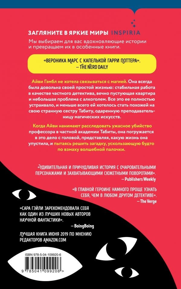 Айви Гэмбл не хотела связываться с магией. Она всегда была довольна своей простой жизнью: стабильная работа в качестве частного детектива, вечно пустующая квартира и небольшая проблема с алкоголем. Все это ее полностью устраивало, и меньше всего ей хотелось стать похожей на свою странную сестру Табиту, одаренную преподавательницу магических искусств. Когда Айви нанимают расследовать ужасное убийство профессора в частной академии Табиты, она погружается в это дело с головой, представляя, какую жизнь она упустила, и пытаясь решить загадку, ускользающую будто по взмаху волшебной палочки.