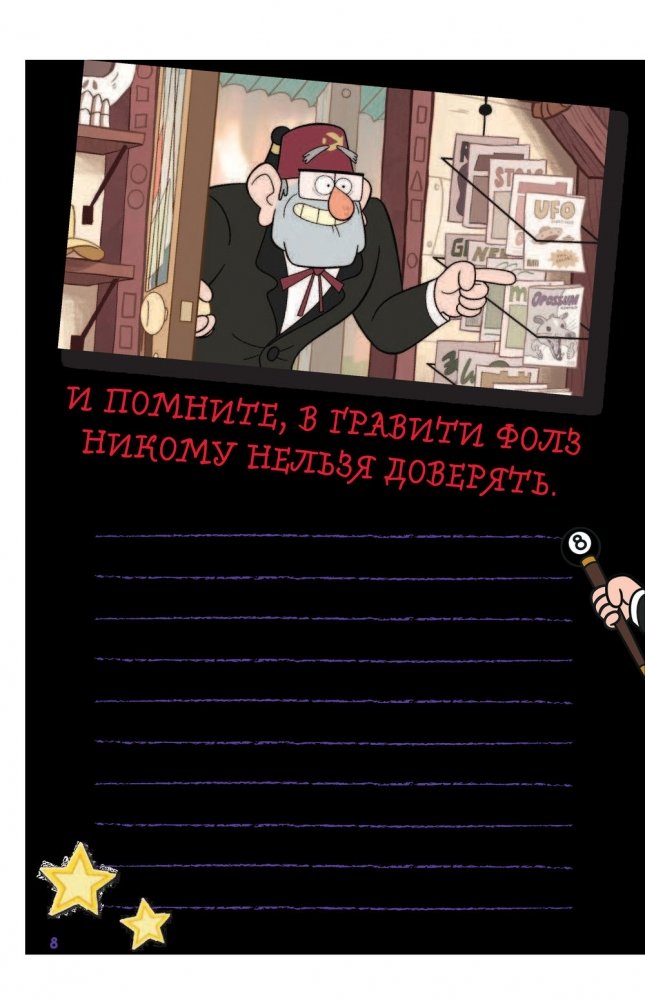 Отвлеките ребенка от телевизора или планшета с помощью Гравити Фолз! Все, что нужно, уже внутри блокнота. Задания, квесты, рисовалки и бродилки, осталось только включить фантазию и проявить себя. Можно устроить крутой челендж и посоревноваться с друзьями, кто интереснее выполнит задание! Мейбл и Диппер уже ждут, чтобы отправиться с читателем в приключение по страницам этого блокнота!