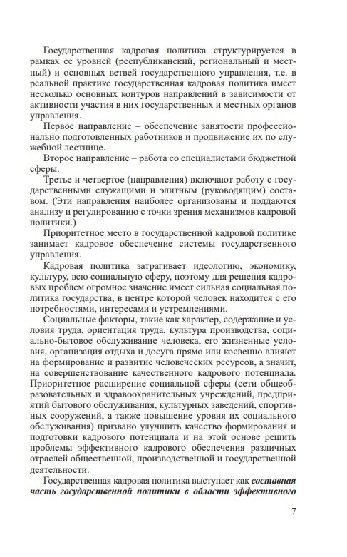 Рассматриваются роль и место государственной кадровой политики в государственном управлении; теоретические и методологические основы; механизмы реализации; организация работы с руководящими кадрами в системе государственных органов в Республике Беларусь, а также кадровые процессы и кадровые технологии в государственном управлении; нравственно-этические основы государственной кадровой политики и государственной службы; основы правового положения государственных служащих и особенности прохождения государственной службы в Республике Беларусь.