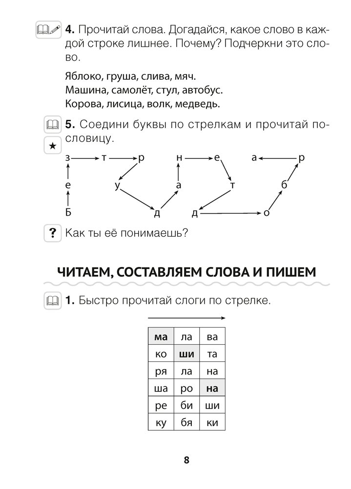 В пособии подобраны небольшие по объёму произведения, предназначенные для совершенствования навыка чтения в 1 классе. В нём размещены разнообразные задания, способствующие развитию внимания и памяти детей, расширению их оперативного поля чтения, формированию навыка предугадывания в процессе чтения, а также развитию речи и творческих способностей начинающих читателей.
