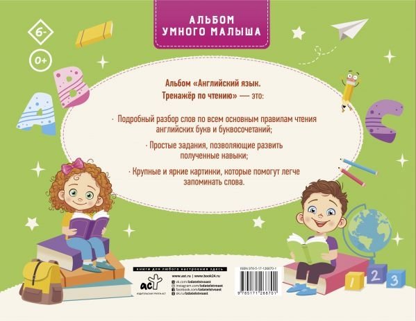 В книге даются основные правила чтения английских букв и буквосочетаний, а также задания для закрепления полученных навыков чтения. Несложные слова с русской транскрипцией и переводом, схемы написания букв и правила чтения звуков, занимательные головоломки сделают процесс обучения приятным и простым.